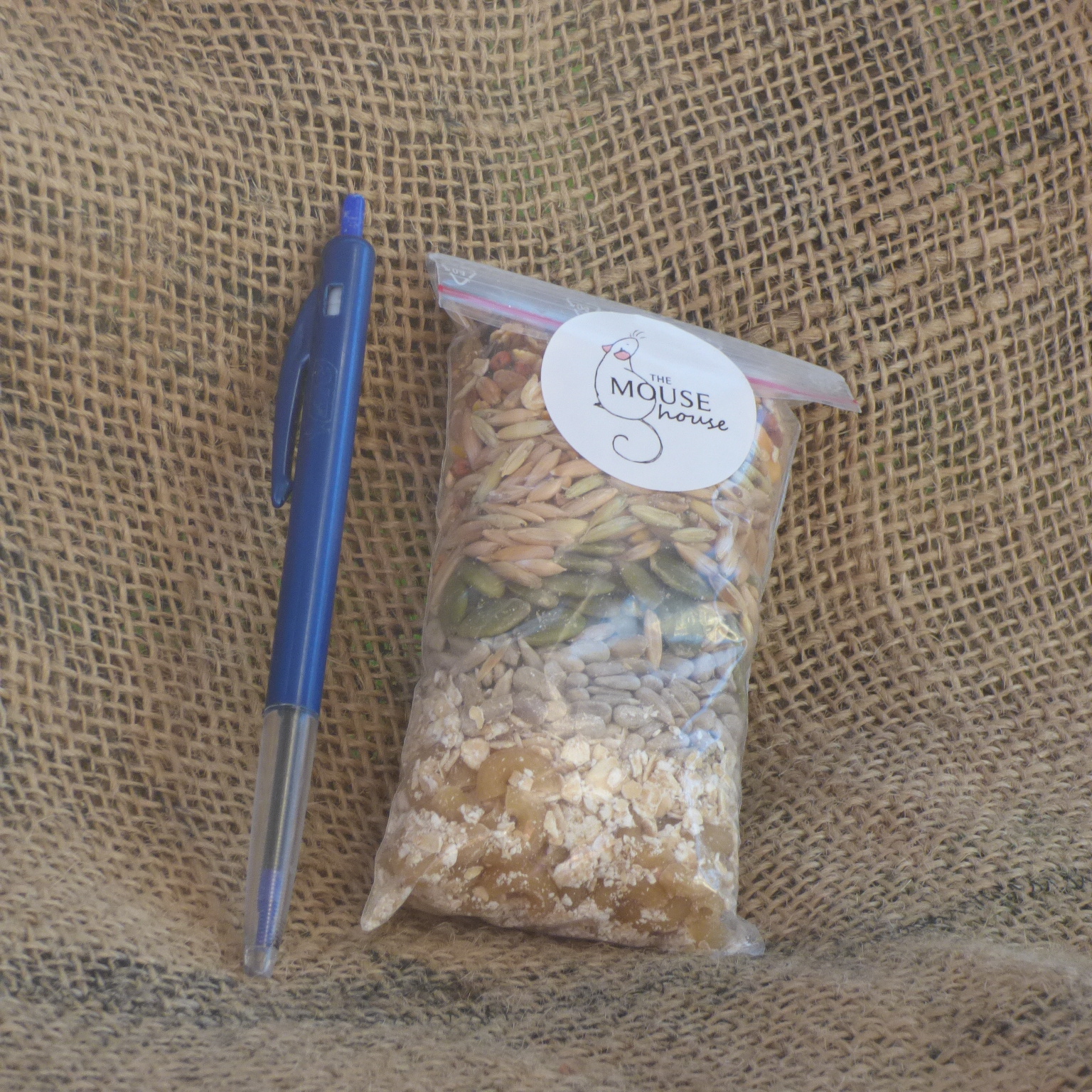 Seeds, nuts and nibbles from the Mouse House. Treats for mice and rats!